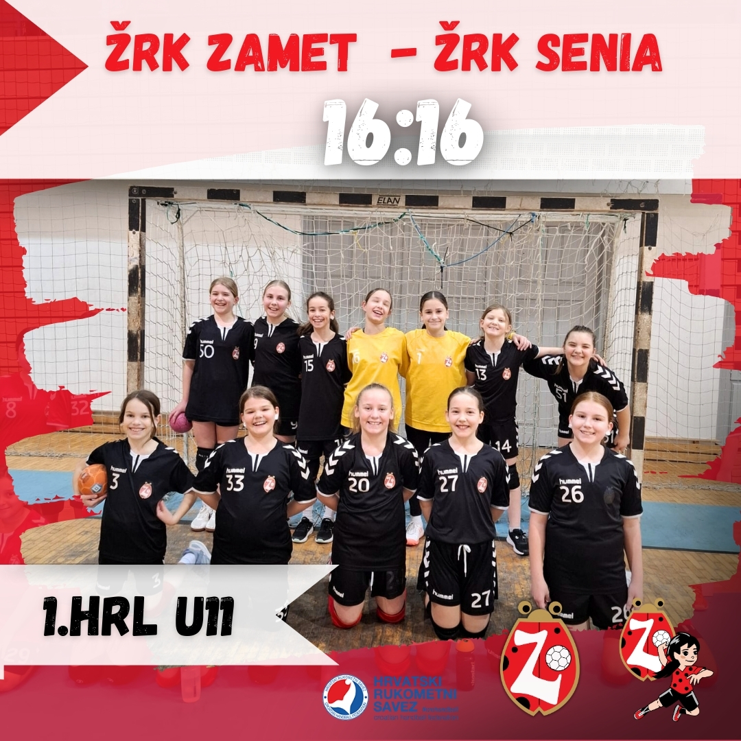 Naše djevojčice su u 8. kolu 1. HRL U11 odigrali neizvjesnu utakmicu protiv ŽRK Senia. Tijekom većeg dijela susreta držali smo vodstvo, no u završnim sekundama domaća ekipa uspjela je izjednačiti i utakmica je završila rezultatom 16:16.